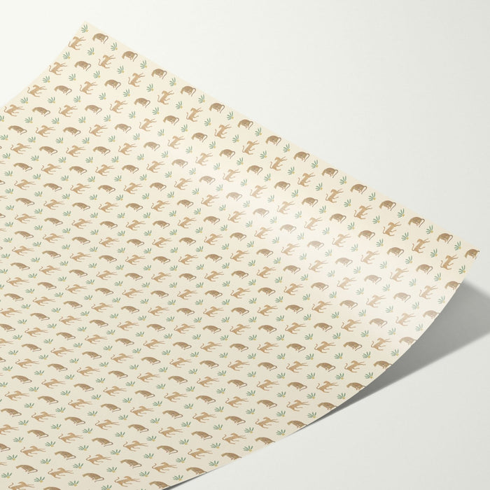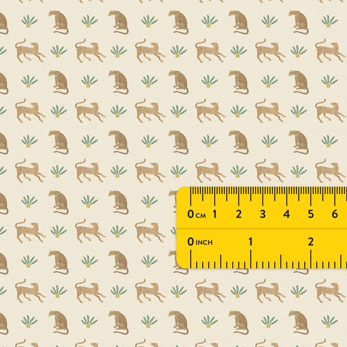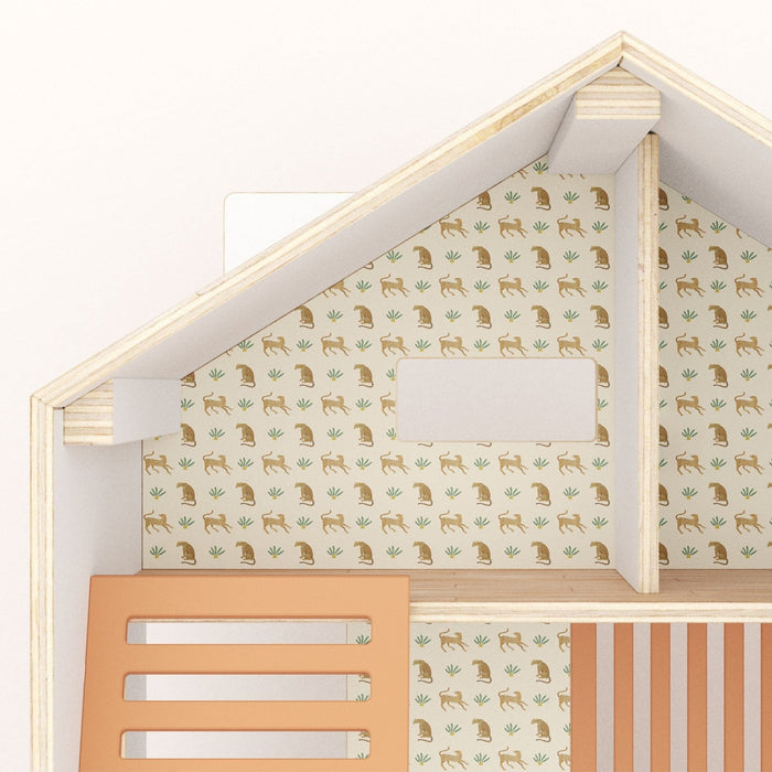 Leopards and plants dollhouse wallpaper in warm, dusty savannah tones. Give your dollhouse walls a new cute look with our high quality peel and stick wallpaper. Just trim and fit as needed and you're ready to go, no adhesives or other tools needed. The pattern repeats to all directions, and you can combine several sheets if you like.