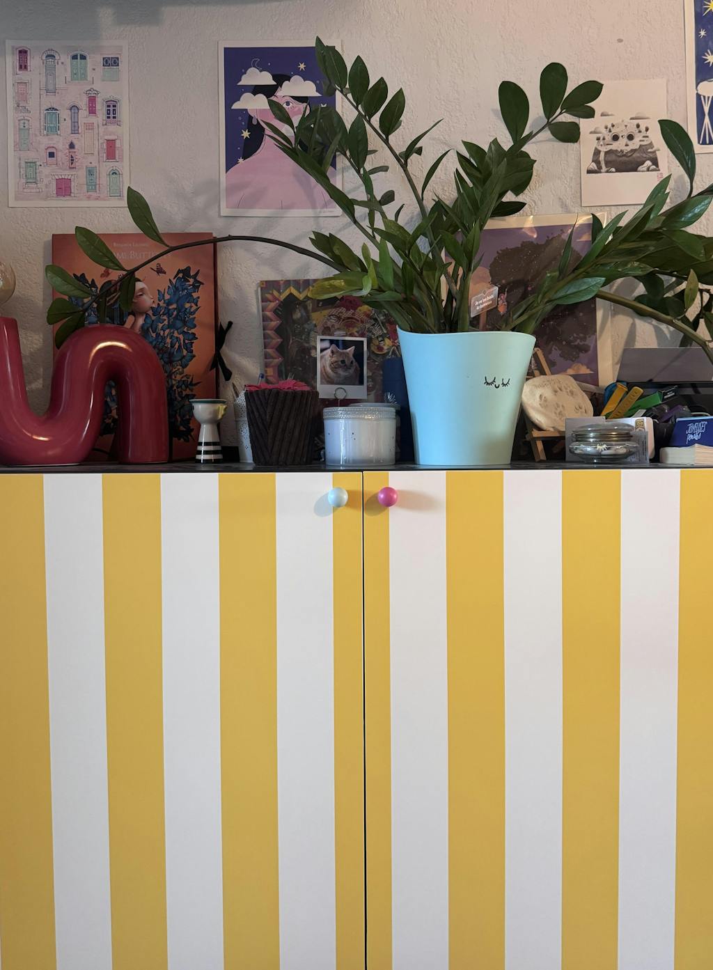 Width of one panel: 56 cm. Remember to measure a bit of extra on the sides.