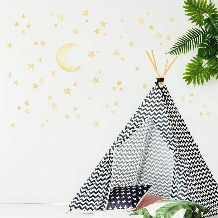 Αυτοκόλλητα Τοίχου με Φεγγάρι και Αστέρια στον Νυχτερινό Ουρανό