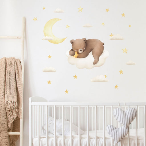 Decorate your nursery with the cutest sleeping bear wall sticker. Hand-painted with watercolours, this bear has a soft beautiful texture that real...