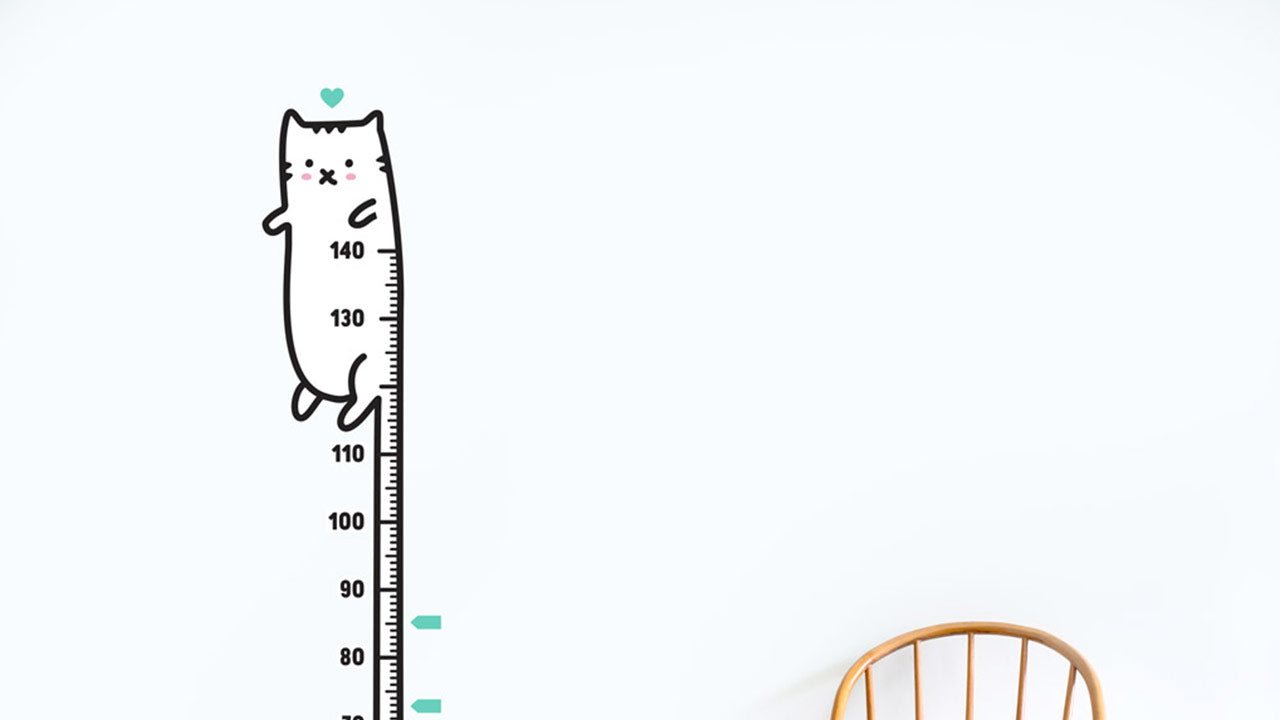 Great news! We have renewed all our kids room growth chart stickers and made them both repositionable and environmentally friendly pvc-free and printed with water based inks. Where our height charts before consisted of just the outlines, now they come with a white background and highlights in the colour of your choosing.