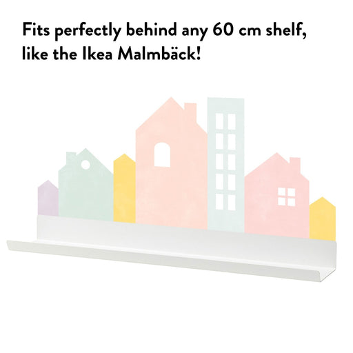 Wall decals perfect for the Ikea Malmbäck (or other similar) 60 cm shelf! Our Small City mural wall stickers make for great kids room decor. With s...
