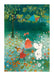 Moomin and Little My is playing with their new friend Ninny, the invisible child. This beautifully painted poster with its green and colorful hues go great together with many different interiors.