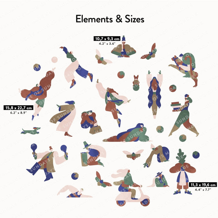 Janine Rewell is a Finnish award-winning designer with an illustration style that enchants around the world. In collaboration with Made Of Sundays Rewell has created wall stickers with a set of adventurous friends, accompanied with a poster that brings them all together.