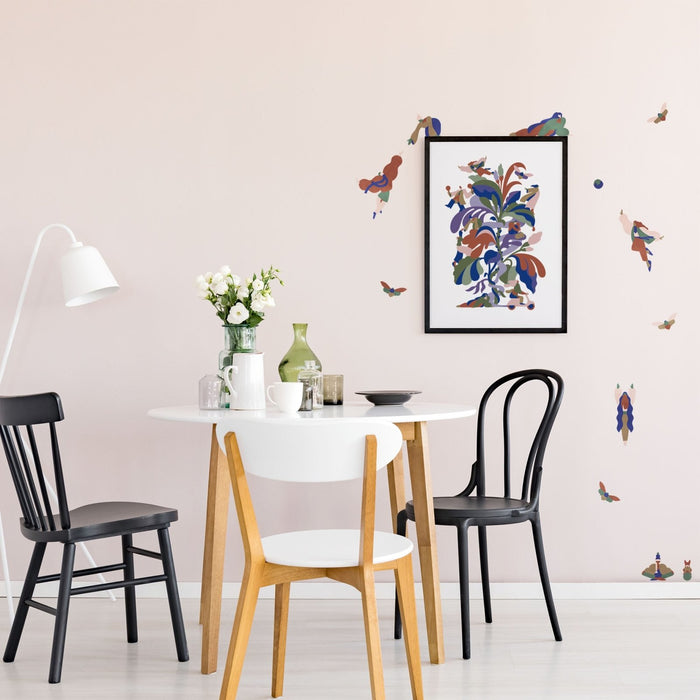 Combine the characters with the Characters poster and create a wall where the whimsical illustrations have escaped the poster and spread out on the wall around. These wall stickers look specially delicious on light blue/grey and pink walls.