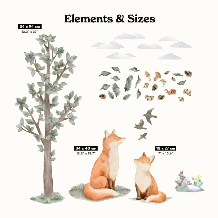 Nordic Forest Fox family Wall Stickers