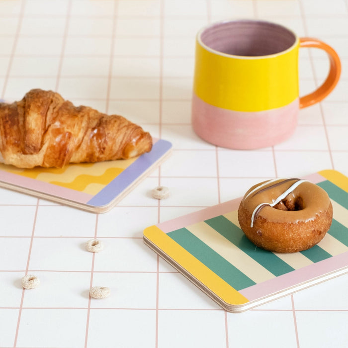 Nous vous présentons nos planches de service pour sandwichs brunch vertes et jaunes : le compagnon parfait pour faire ressortir votre petit-déjeuner toute la journée ! Ces planches en contreplaqué sont ornées de motifs frappants et amusants, donnant à votre repas du matin un coup de pouce supplémentaire pour améliorer votre jeu de brunch. Oh, et le meilleur ? Elles ne se cassent pas lorsqu'elles tombent. En plus de les utiliser pour servir, elles fonctionnent également très bien comme petites planches à découper.